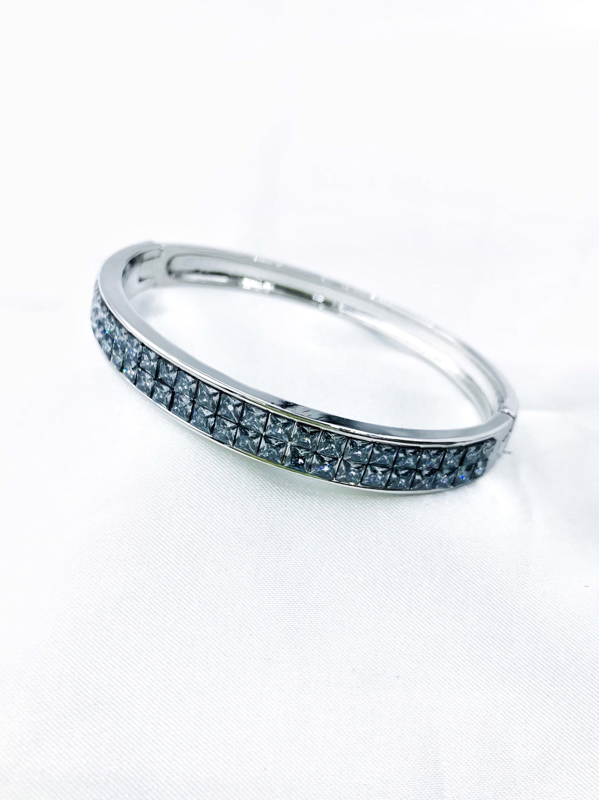 Cubic Zirconia, White-Gold Plated Bangle in Grayish-Blue tone. Perfect Bangle for the daily wear.
