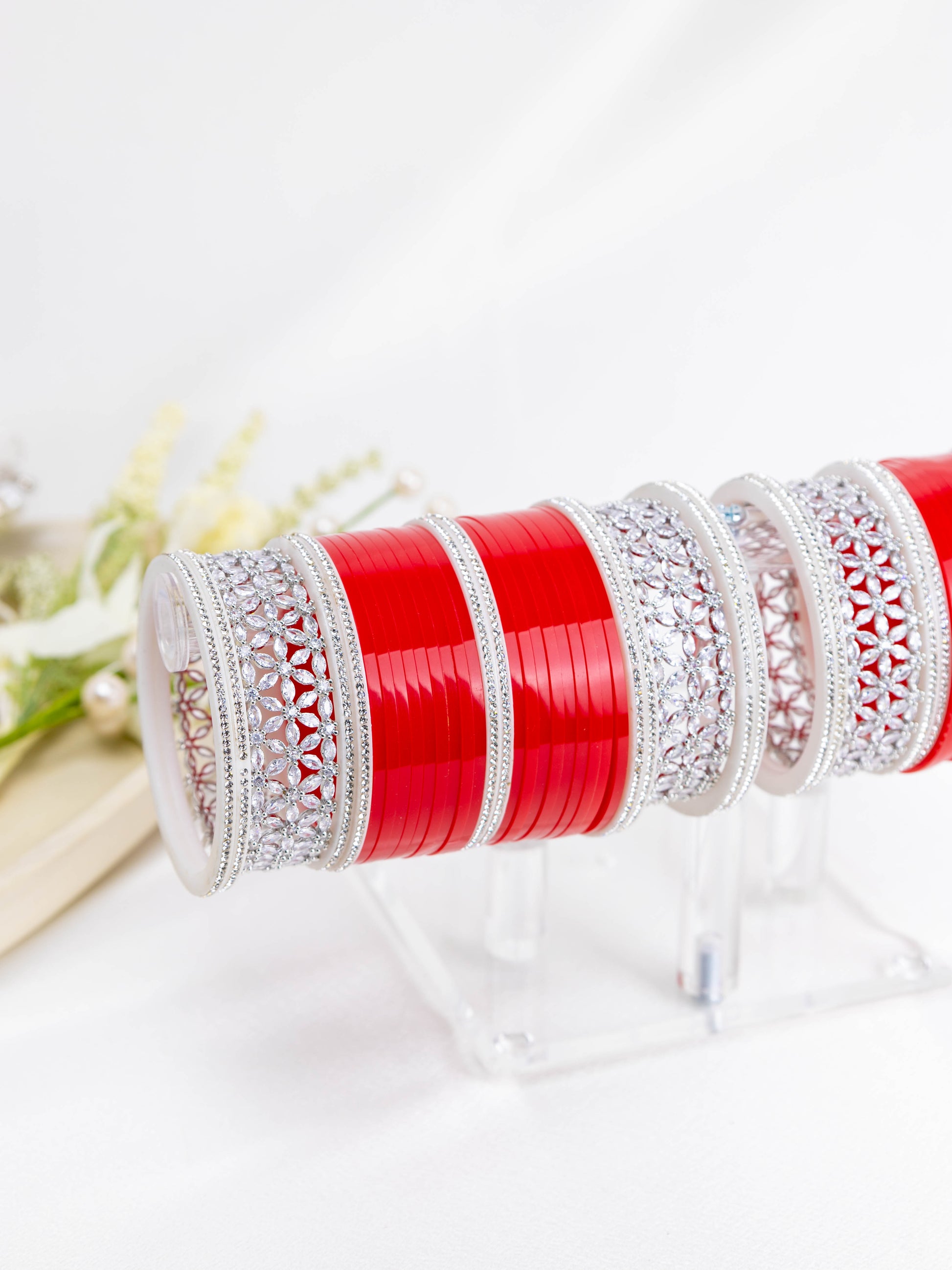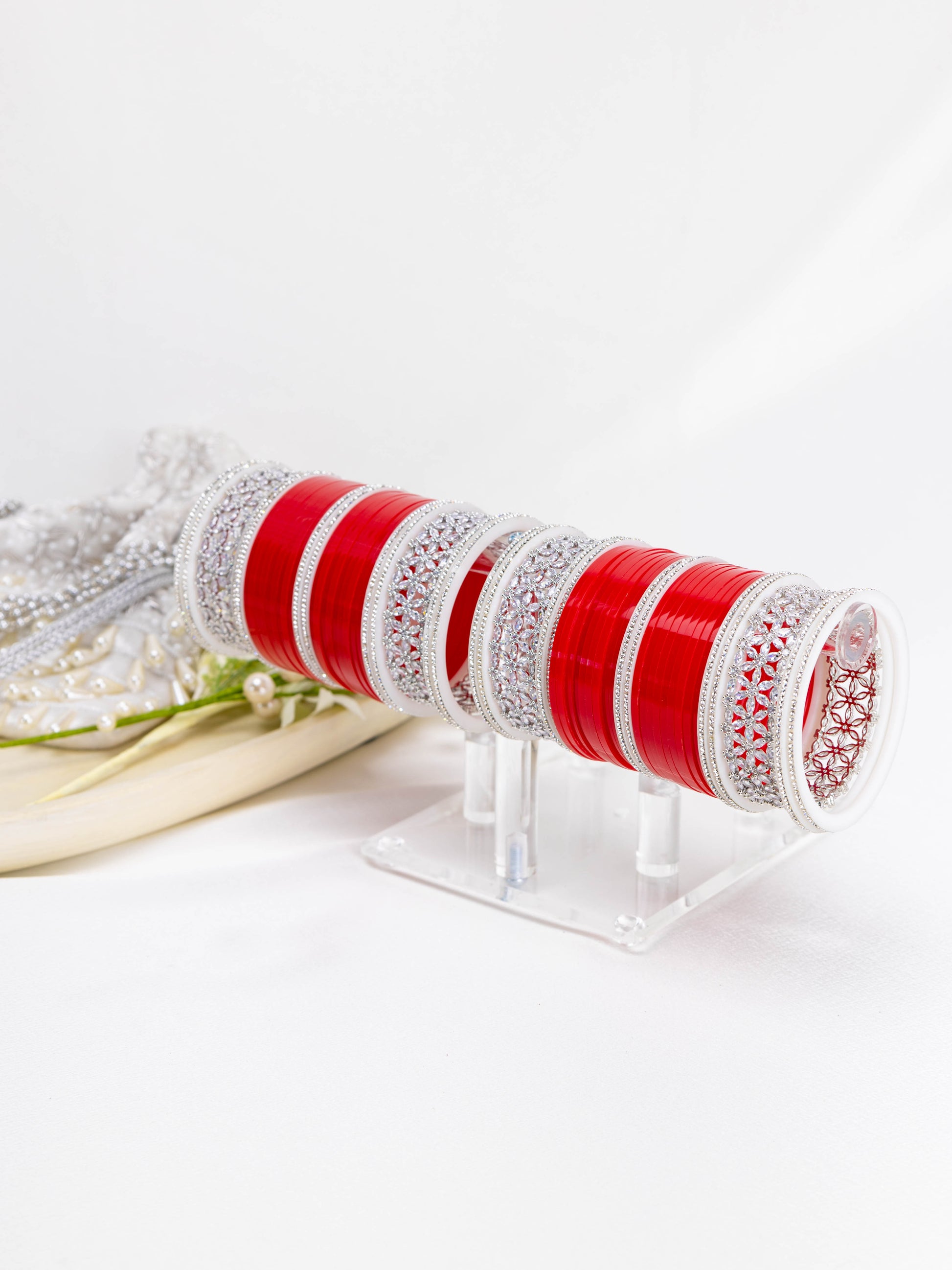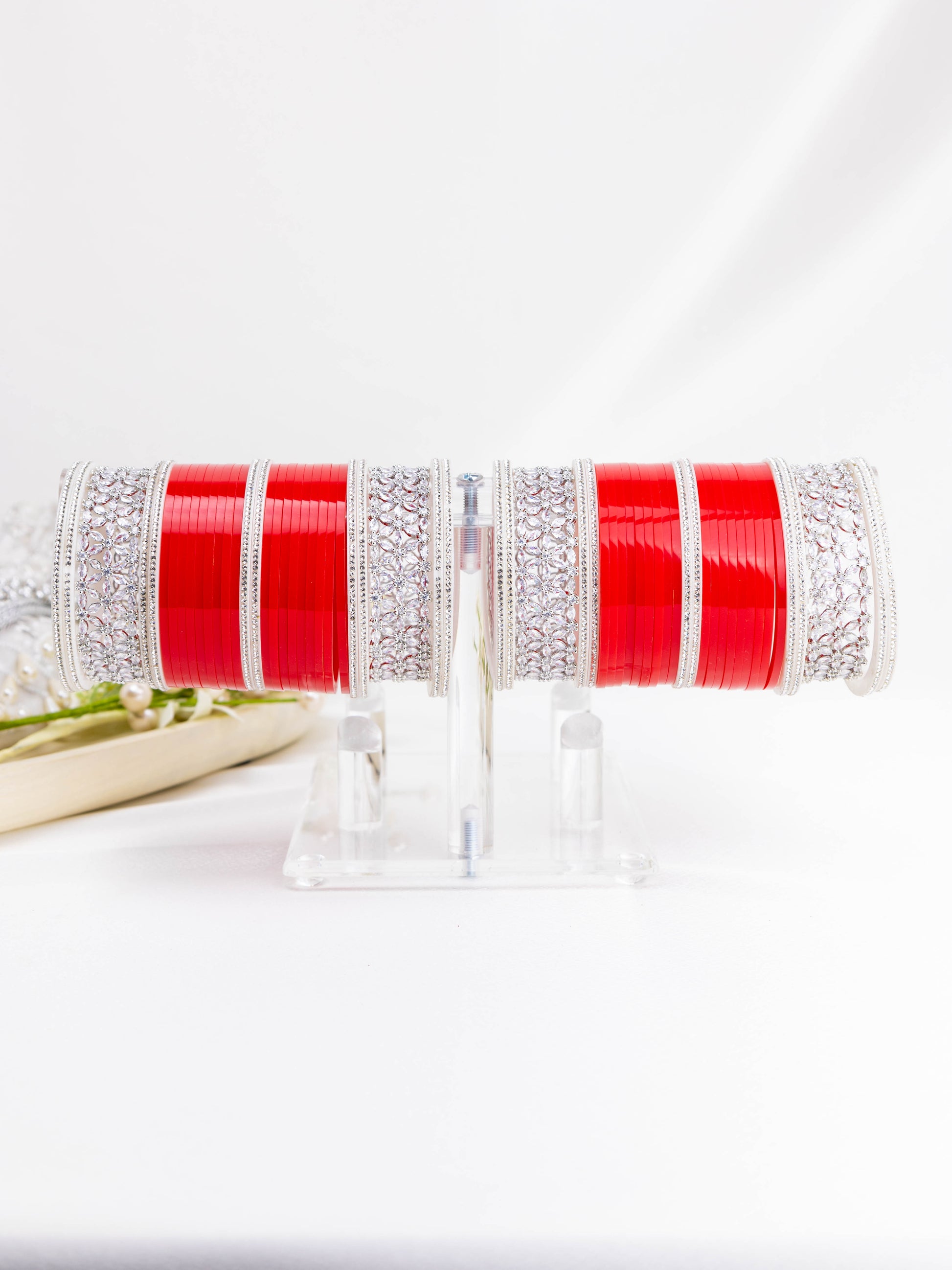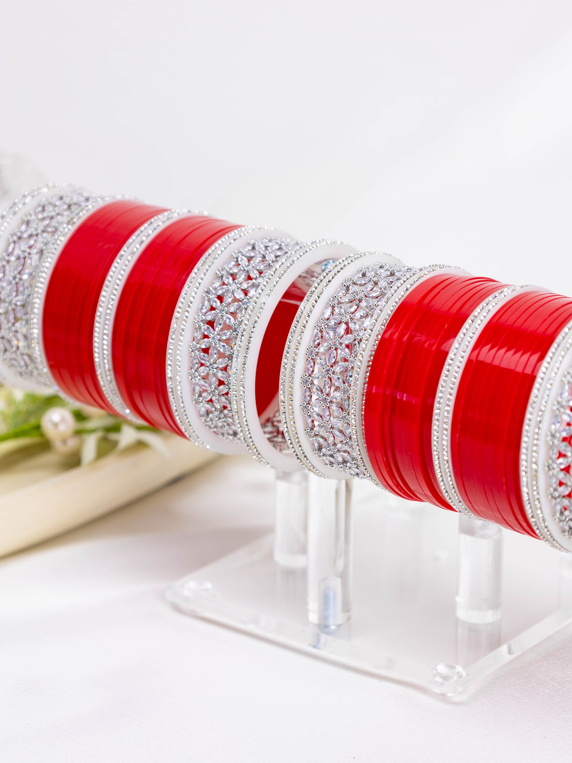 Cubic Zirconia Bridal Chura customizable in light red, dark red, and maroon.