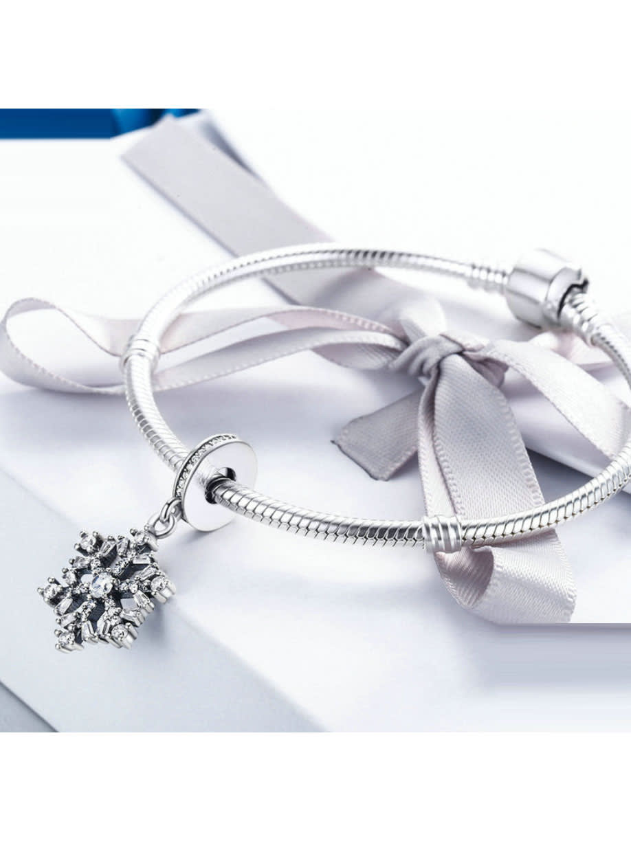 925 Silver Snowflake Charm perfect for the winter season. The charm has cubic zirconia stones.
