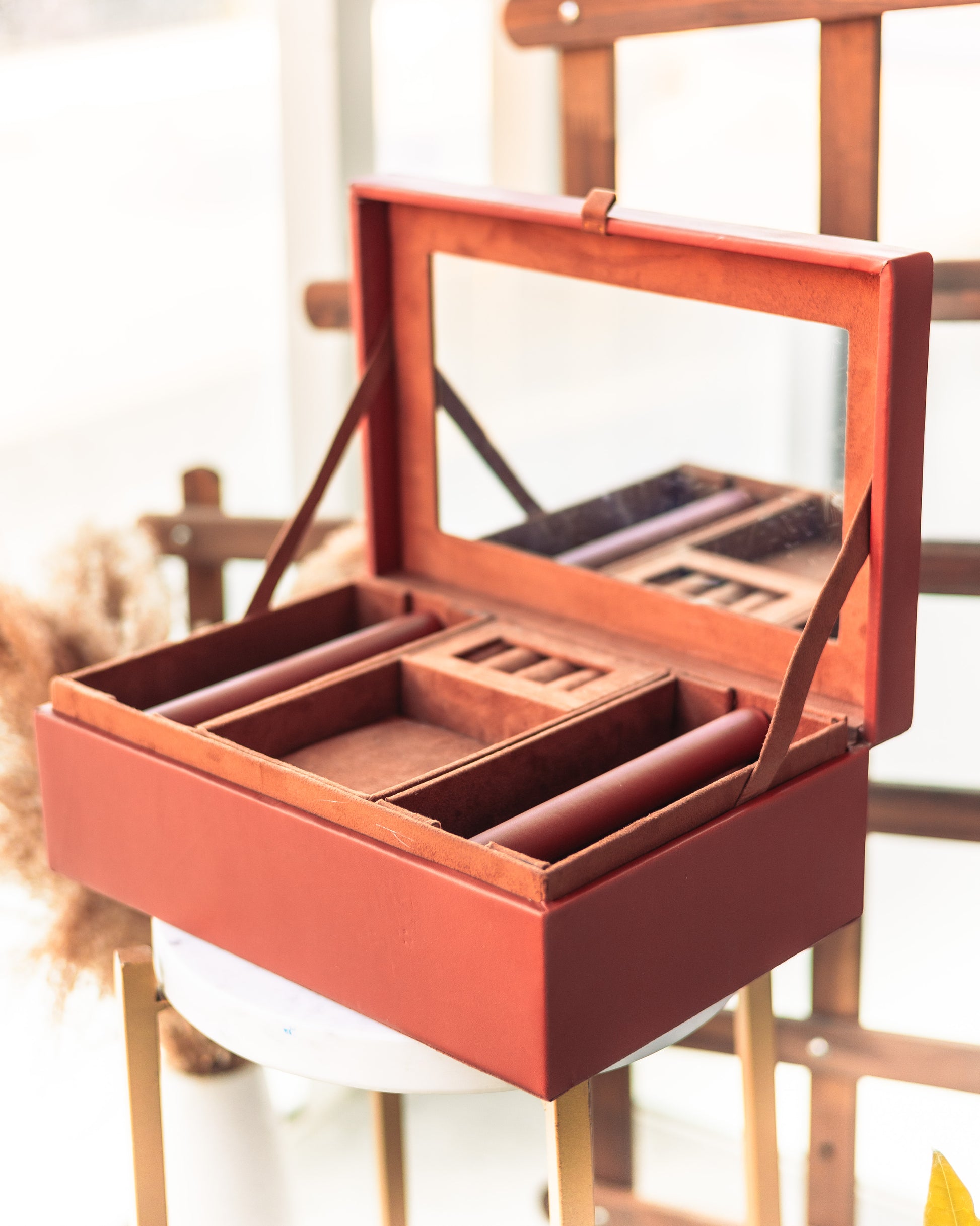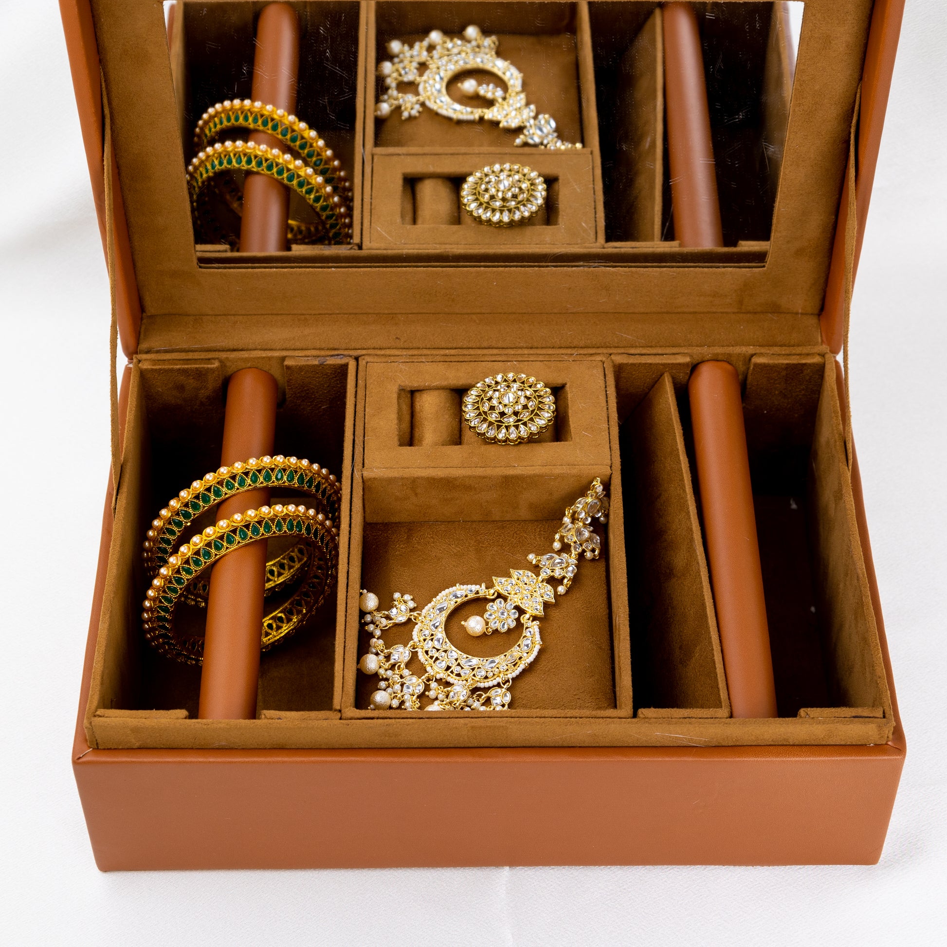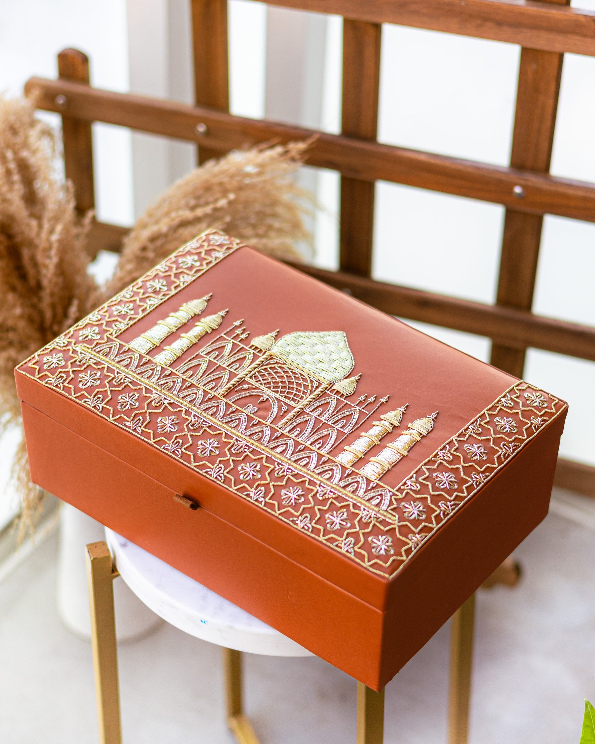 Embroidered Taj Mahal Trousseau Box made with vegan leather.